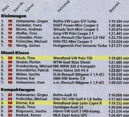 Das waren unsere Ergebnisse vom sport auto Tuner Grand Prix 2003 am Hockenheimring: