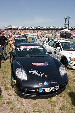 Durch verwenden von Sportreifen, mit der der Porsche GT3 serienmäßig ausgerüstet wird, lässt sich die Rundenzeit unseres Cayman auf 1.11,50 noch verbessern. Der Start wäre dann nur in der offenen Klasse möglich.