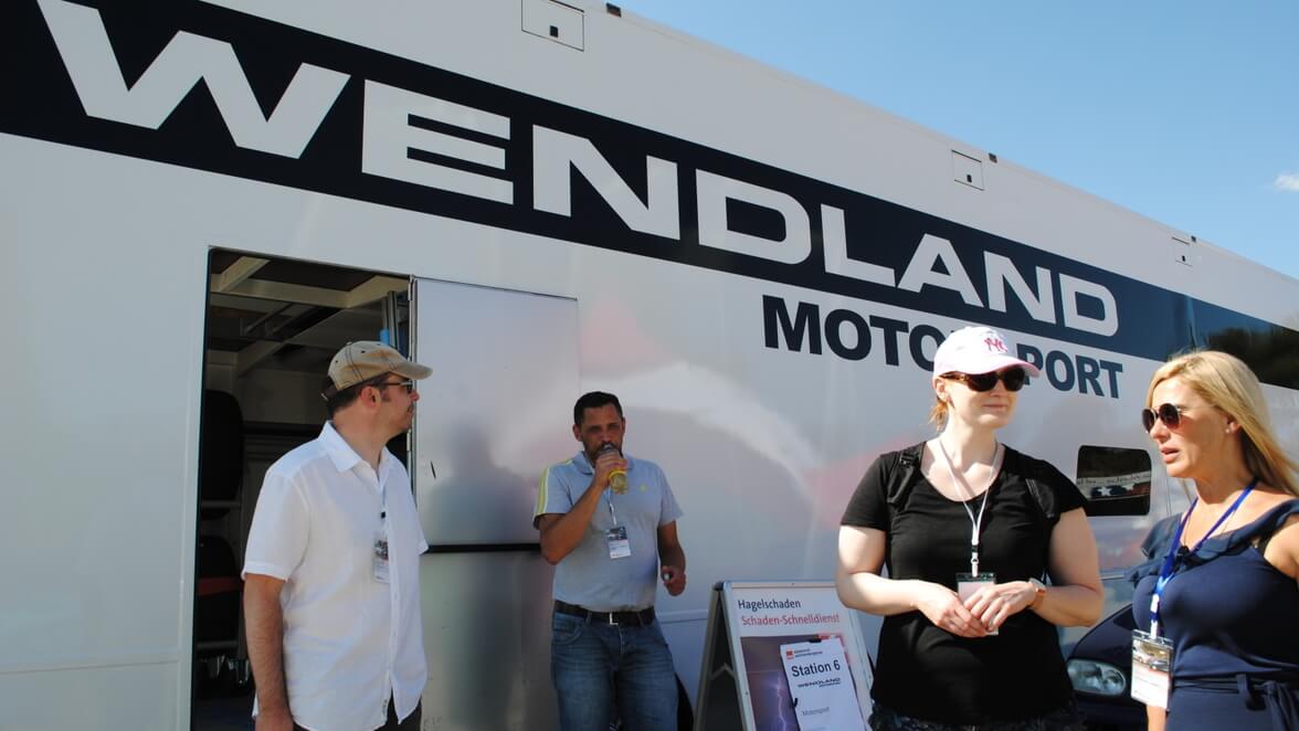 "Einen Meter von ihnen entfernt heult alle drei Minuten der Motor eines Rennwagens auf. Karl-Heinz Wendland sitzt am Steuer und strahlt mit der Somme um die Wette. Dem Chef der in der Szene hochgelobten und bekannten Autotuner der Wendland Motortechnik GmbH aus Rangendingen bereiten die Rennen mit enormer Beschleunigung auf 100 Sachen einen Riesenspaß. Seine Beifahrer, gut verpackt in Helm und Gurt, sind allerdings etwas blass um die Nase, wenn sie aussteigen. Aber auch diese Erfahrung gehört zum Gesamtpaket dazu, das Matthias Deppert für seine Kollegen geschnürt hat. Der organisatorische Aufwand für die Crashtest-Tage sei enorm hoch sagt er, aber die durchweg positive Resonanz bestätige und motiviere ihn. „Wenn man das gesehen hat, kann man Schadensfälle bewusster und aufmerksamer beurteilen, den Schaden schneller und sicherer regulieren, Betrug und Manipulation leichter entlarven“, erklärt Deppert. Davon profitierten nicht nur Kfz-Versicherungen, sondern vor allem auch die Kunden. Einen Parcours mit acht Stationen durchlaufen die Teilnehmer, die in Hotels und Pensionen in und rund um Haigerloch untergebracht sind. Es werden Kleinunfälle, wie der berühmte Parkrempler, und allgemeine Haftpflichtschäden, zum Beispiel von Kinderhand verursachte Kratzer oder Dellen im Lack, simuliert und besprochen. Weitere Infos liefern Vertreter von Autoglasreparaturwerkstätten und vom Hagelschadenzentrum Ulm."